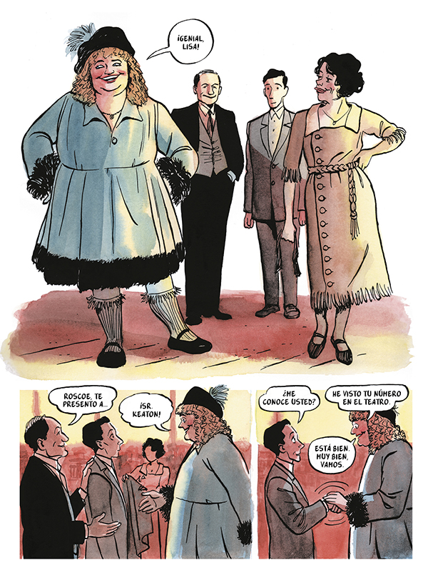 De esta forma Buster Keaton se convierte en narrador de la obra, a la par que en coprotagonista de la historia. En un flashback por su memoria, recupera todos los momentos de su amistad con Arbuckle al mismo tiempo que hace un retrato tanto de la evolución del cine y la sociedad de la época. Y es que Arbuckle no ha llegado hasta nuestros días en el imaginario colectivo por un motivo muy concreto, fue acusado de asesinato y completamente desacreditado.
