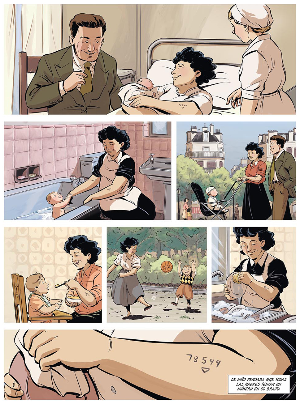 Es por ello que, cuando este año vi – por casualidad – en Bangarang, mi librería de confianza, la portada de Adiós, Birkenau tuve claro que iba a hacerme con aquel cómic y, por suerte, su lectura no sólo fue todo un descubrimiento sino que me aportó muchísimo en cuanto a temas como la memoria, el trauma y la representación tanto de conflictos bélicos como de sus traumas… para que estos, a poder ser, no vuelvan a repetirse. Y todo a través de un punto que me fascina, como es la comunicación y la transmisión de conocimiento a las nuevas generaciones. Pero, entre tantos nombres en la autoría de esta novela gráfica, ¿quién es Ginette Kolinka, y por qué considero importante su historia?